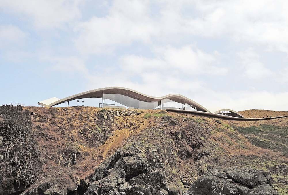 Des arches structurelles reliant les « points d’atterrissage » diagonaux permettent au toit de s’étirer et de flotter, créant une variété d’espaces ouverts et d’expériences spatiales difficilement réalisables avec des structures voûtées ou inclinées conventionnelles. La toiture fluide crée une impression de volume intérieur plus petit que l’empreinte réelle, tout en reliant visuellement et physiquement la maison aux falaises et aux vagues qui l’entourent.