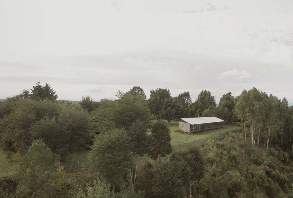 La matérialité du bâtiment reflète les contraintes climatiques du sud chilien, caractérisé par l’humidité, la pluie et de fortes variations saisonnières. Les architectes ont opté pour des matériaux robustes et durables, capables de résister au temps et aux conditions environnementales, tout en évoquant une certaine continuité avec l’architecture locale. La palette volontairement restreinte renforce le caractère intemporel du projet.