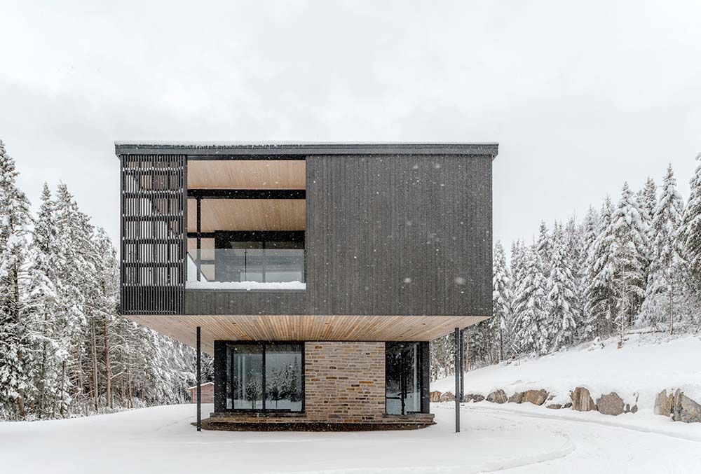 Implantée à Saint-Damien (Canada), en bordure de rivière, la résidence s’inscrit délicatement dans son environnement naturel. Le volume linéaire épouse les courbes de niveau du terrain et se fragmente afin de suivre le tracé sinueux de la rivière, tout en respectant la bande végétale riveraine existante.