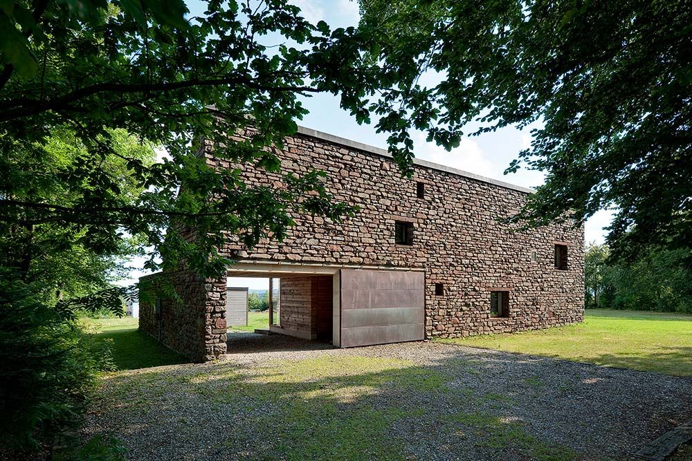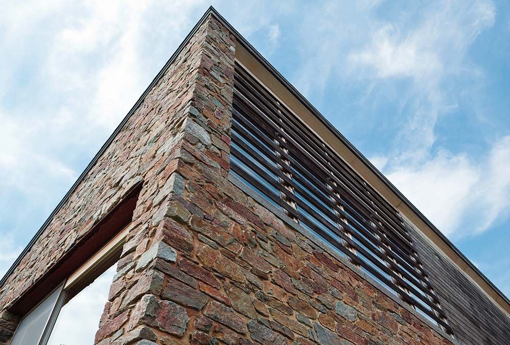 Extraits des carrières de la Warche, à Malmedy, ces moellons sont le fruit d’un savoir-faire local et d’une ressource authentique, façonnée par un patrimoine géologique unique. Naturellement teintée de rouge, la pierre déploie une palette subtile — rouille, gris, bleu — issue de l’oxydation de son litage fin et onduleux. Cette variété chromatique permet une intégration élégante dans les projets contemporains comme dans les restaurations patrimoniales. Associée au bois, à la pierre bleue, au marbre, au cuivre, au zinc ou à l’acier, elle crée un dialogue équilibré entre tradition et modernité.